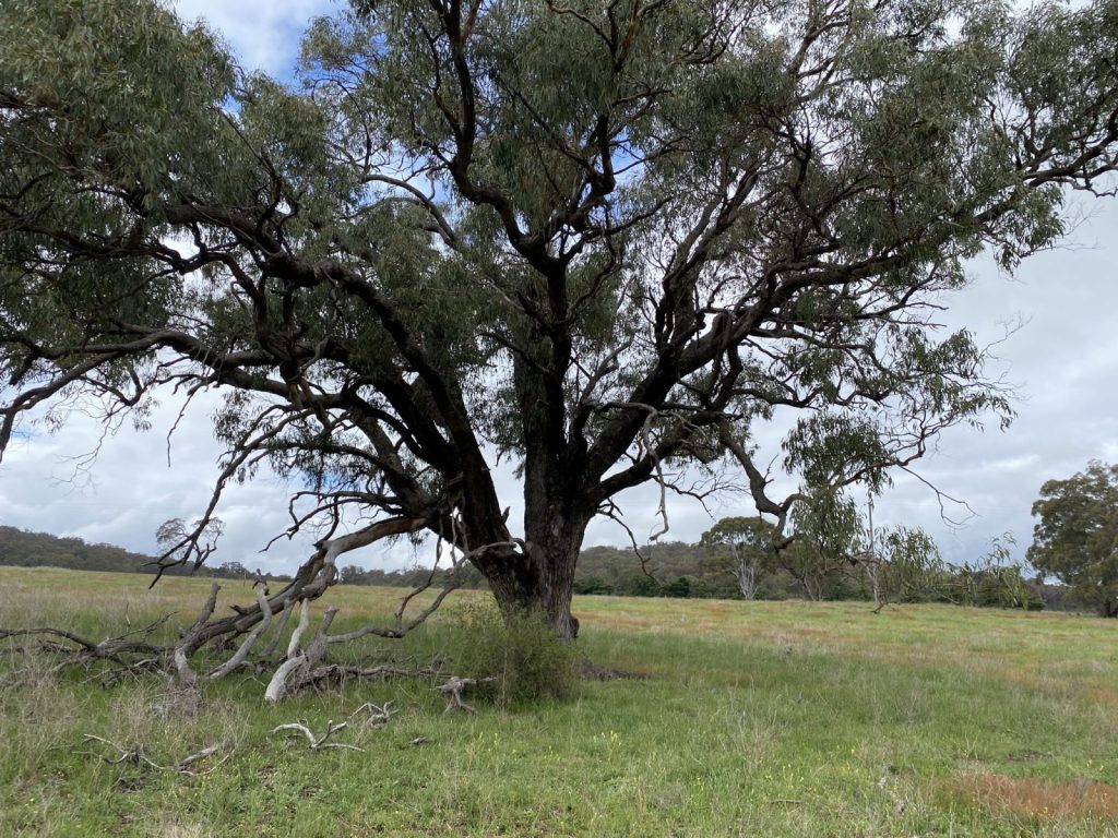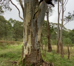 Eucalyptus albens, the White Box, will develop into a medium to tall tree. The trunk is short and straight. The crown is rounded to spreading. Bark is persistent, light grey to whitish with bleached patches. Branches are smooth and white. Leaves are oval to lance-like and are grey to bluish-green on both surfaces. The buds are carried in clusters of three to seven and are spindle-shaped.