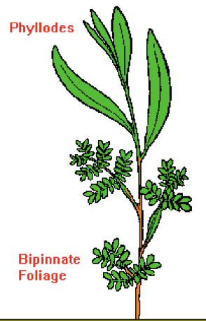 The presence of bipinnate foliage in seedlings is an indication that the ancestral Acacia had bipinnate leaves.