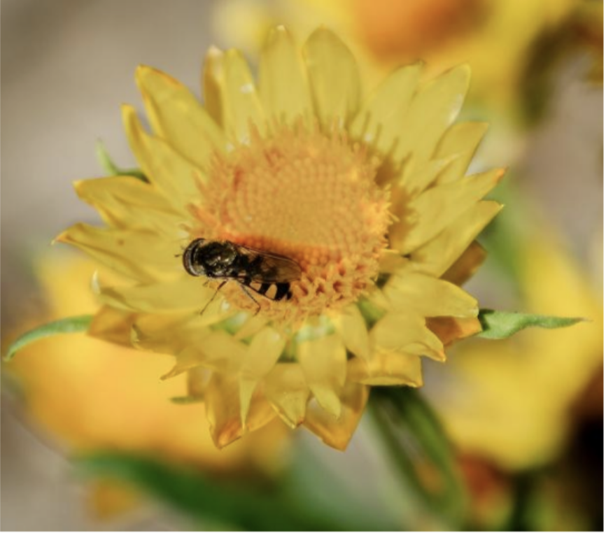 Hover fly on Xerochrysum bracteatum